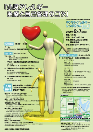 こうした流れの中で、今年の“リウマチ・アレルギーシンポジウム”が桜木町の「はまぎんホールヴィアマーレ」で開催されます。 今年のテーマは「小児アレルギー 治療と自己管理のコツ」。親子で根気よく自己管理することが必要な小児アレルギーに関する、正しい最新情報を得ることができることでしょう。入場無料ですが、会場の都合で事前申込が必要です。(2月2日)