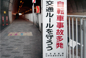 下りトンネル内歩道を拡幅し自転車専用路にできないか(左)