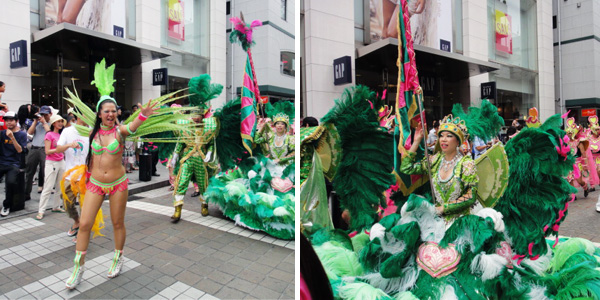 元気な踊りと演奏を披露したのは、横浜に本拠地を置く「エスコーラ・ヂ・サンバ・サウーヂ」の皆さんとのこと。国際色豊かな横浜にはサンバチームもあったのですね。