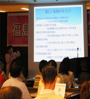 今回の報告会では、まず、6月21日に終了した第二回市会定例会で可決した、二つの議員提案による条例改正― (1)「横浜市市民協働条例」と「横浜市廃棄物の減量化、(2)資源化及び適正処理等に関する条例」― の取り組み経過を報告。今後ますます必要性の高まる、”市民の力を存分に発揮し支えあう社会”の実現へ大きな契機となることを強調しました。