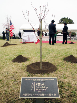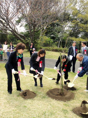 3月29日には、日米桜交流100周年を記念してアメリカ合衆国から贈られたハナミズキが本牧山頂公園のアメリカ坂上に植樹されました。100年前ワシントンDC・ポトマック河畔に植樹され、今や世界的な桜の名所となった、あの桜に対する返礼の寄贈とのことです。当日は、アメリカ合衆国のジョン・ルース特命全権大使、林文子横浜市長が出席し、春うららの気候のなかで、日米友好の絆をさらに強めていくことを誓い合いました。