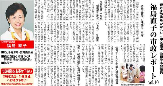 皆さまの声をかたちに 福島直子の市政レポートvol.10